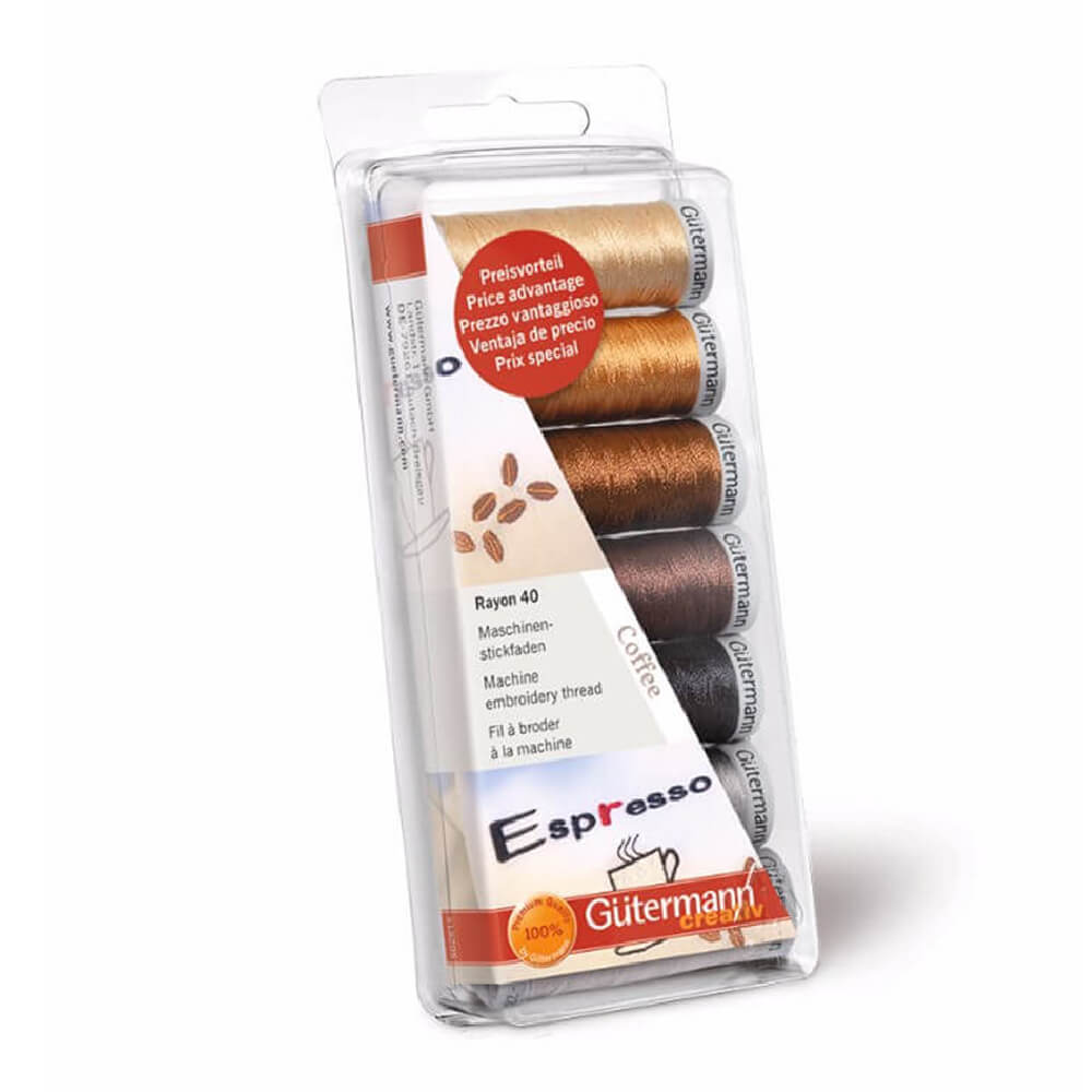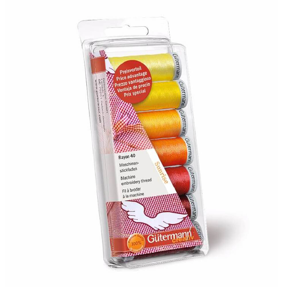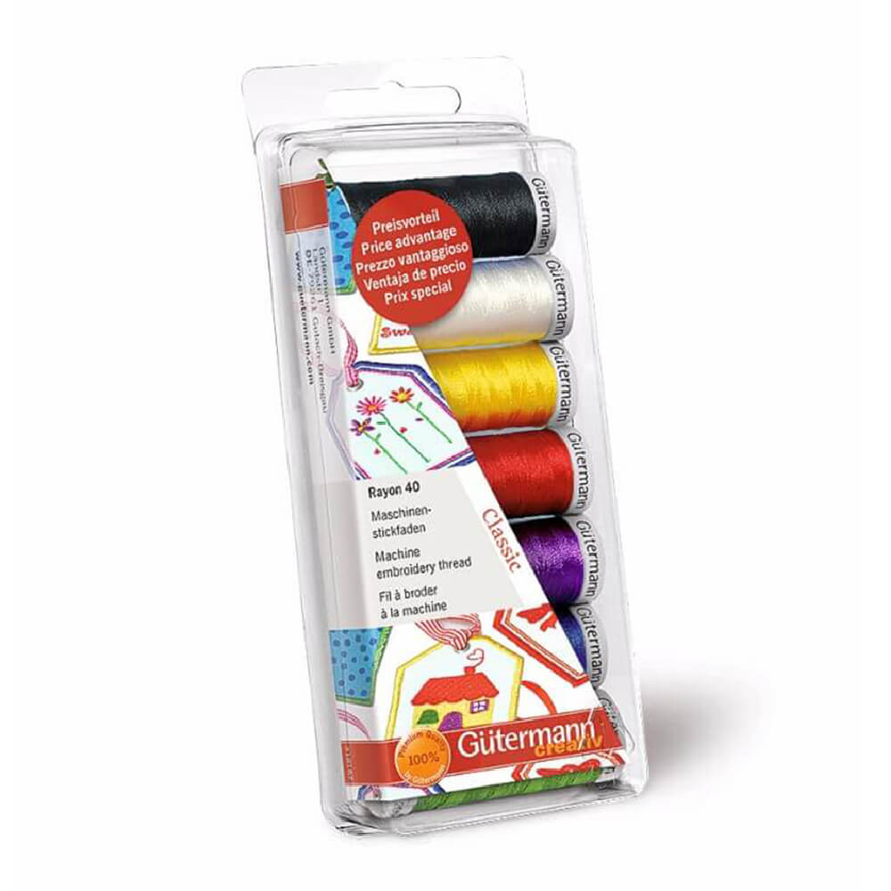 - Gütermann Machineborduurgarenset Rayon nr.40 10x200m - 1stArtikelnummer: G734005Dit artikel is momenteel niet in bestelling. Daarom is de leverdatum onbekend.Beschikbaar in 3 varianten