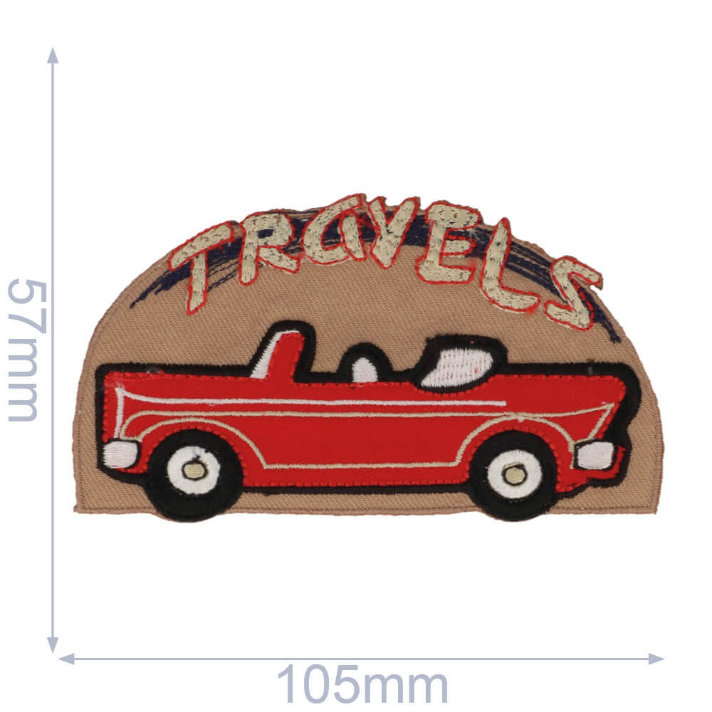 HKM Applicatie auto travels 105x57mm rood-beige - 5st -