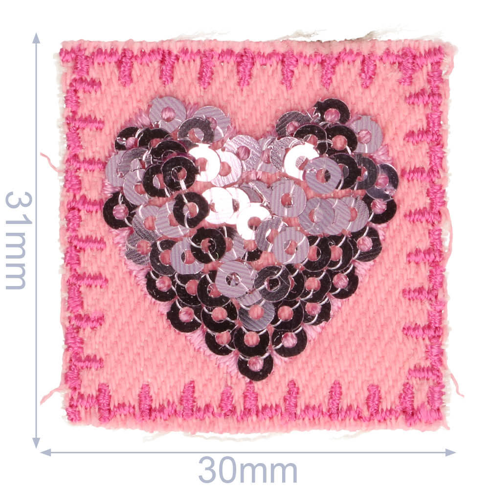 HKM Applicatie hart pailletten roze 30x31mm - 5st