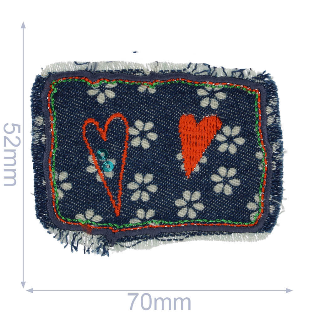 Applicatie Hartjes op jeans bloemetjes oranje - 5st