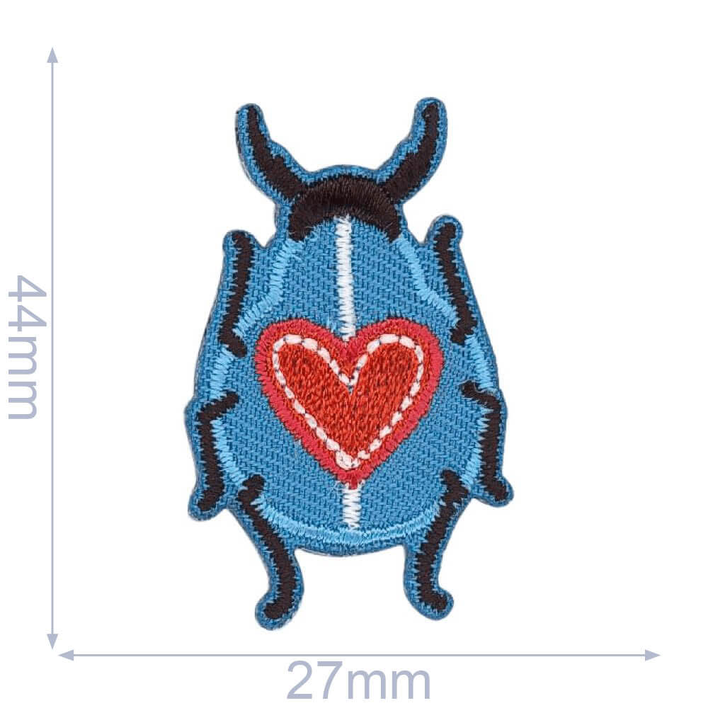 HKM Applicatie kever met hart 27x44mm blauw-rood - 5st -