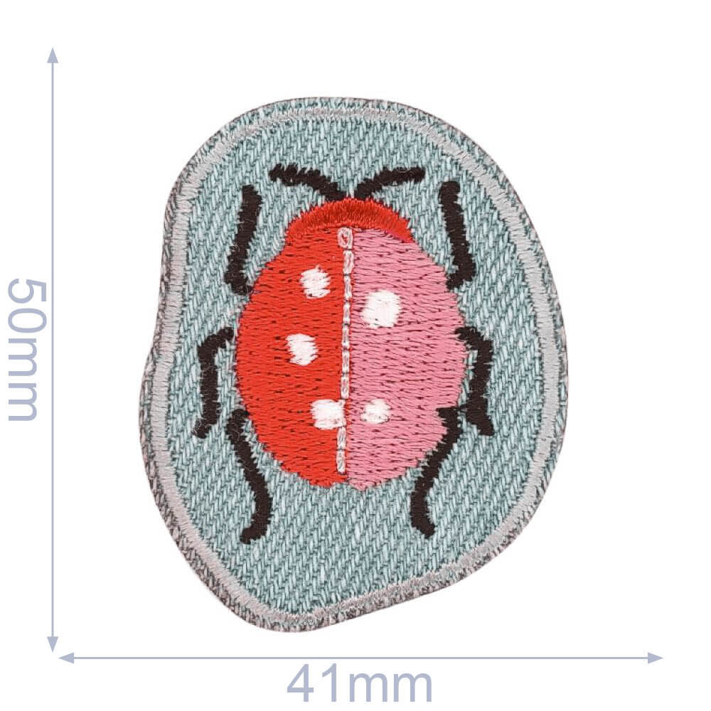 HKM Applicatie kever 41x50mm rood-roze jeans - 5st -