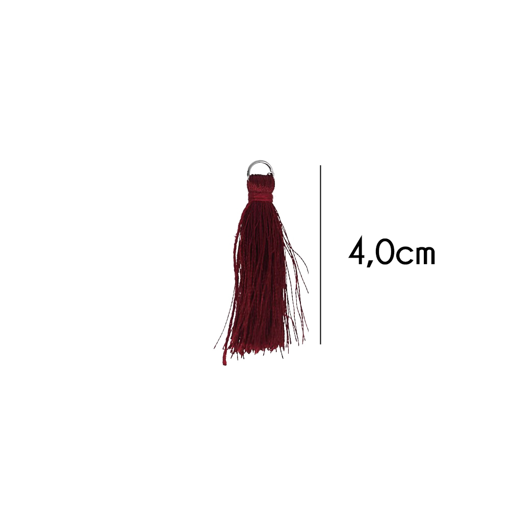 Kwastje glans met ring 4,0cm lang bordeaux - 20st - 750 -