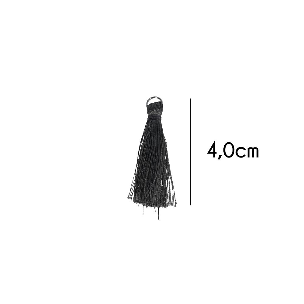 Kwastje glans met ring 4,0cm lang zwart - 20st - 000 -