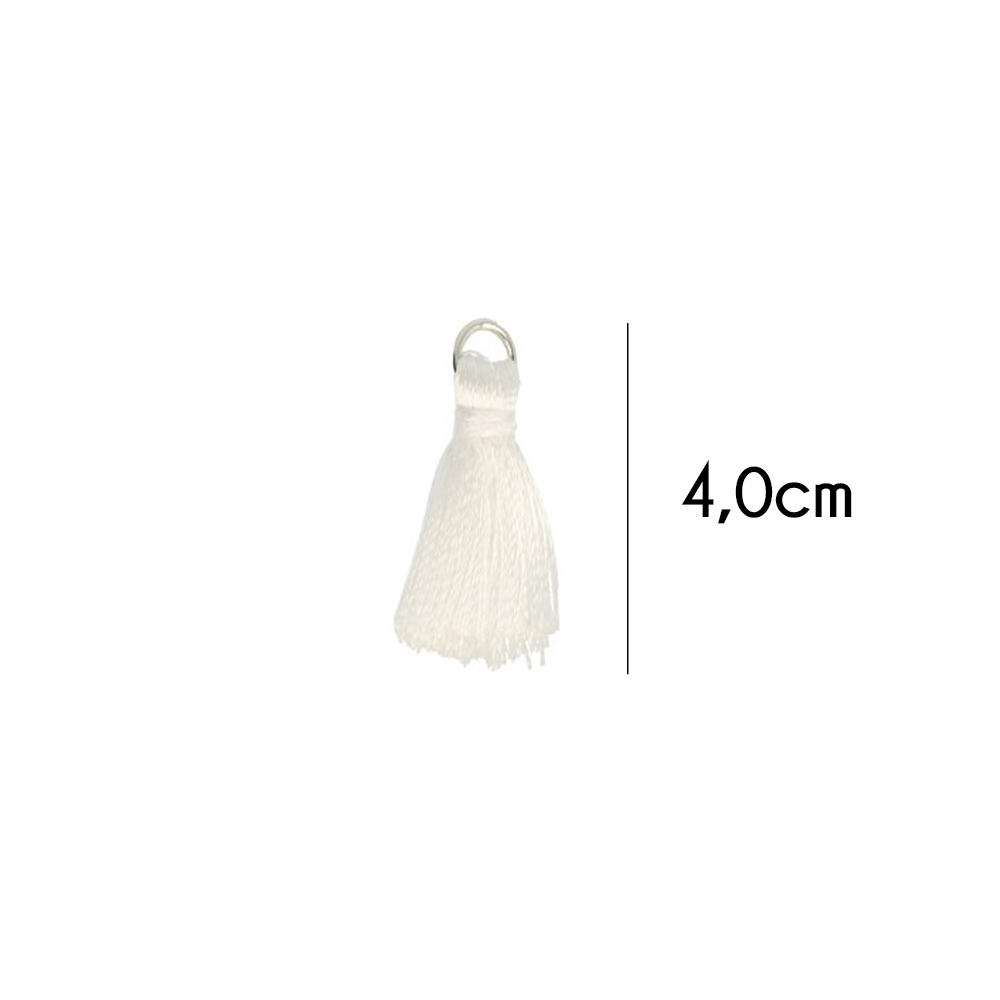 Kwastje glans met ring 4,0cm lang wit - 20st - 009 -
