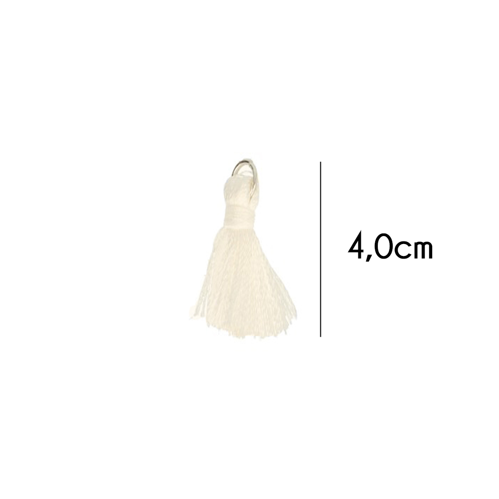 Kwastje glans met ring 4,0cm lang ecru - 20st - 089 -