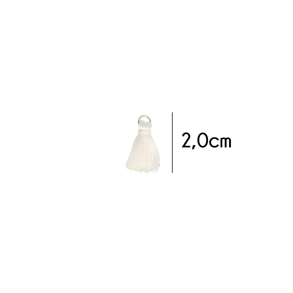Kwastje glans met ring 2,0cm lang wit - 20st - 009 -