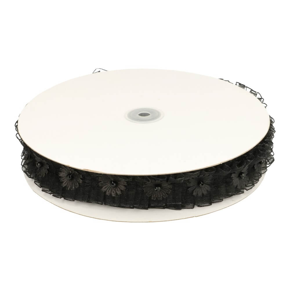 Organza zwart geborduurd - 13,8m - 000
