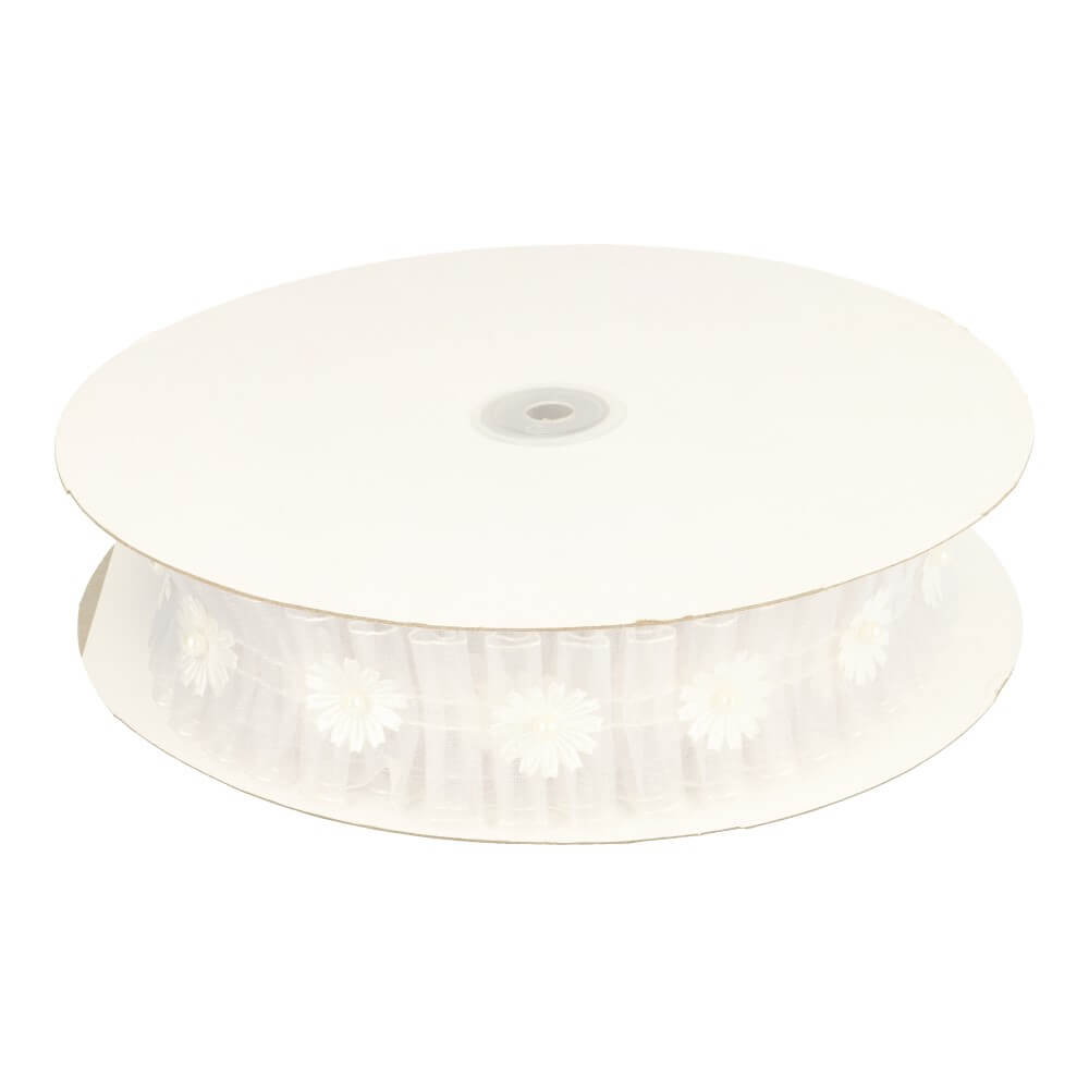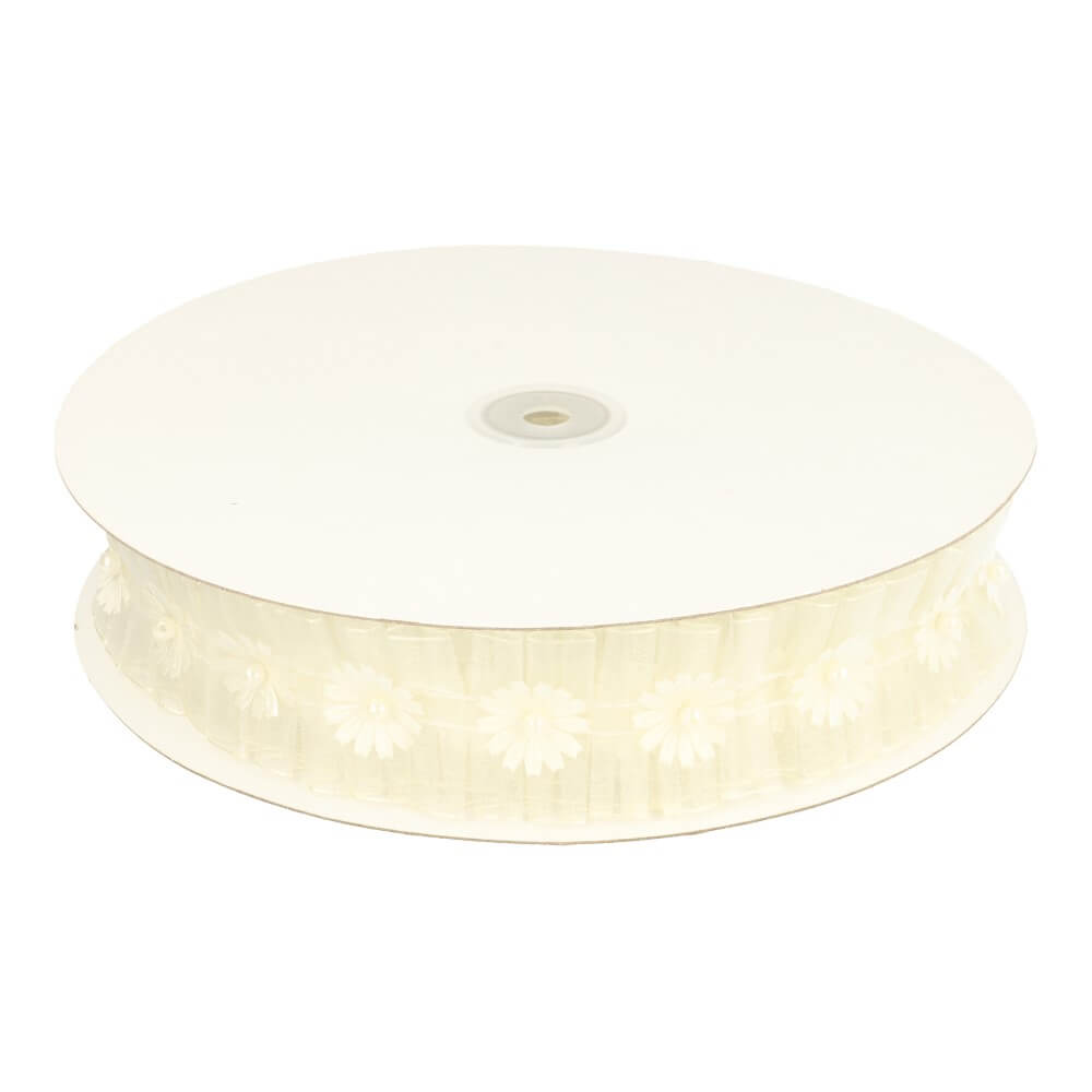 Organzalint met satijnruche 30mm - 9,2m - 000 -