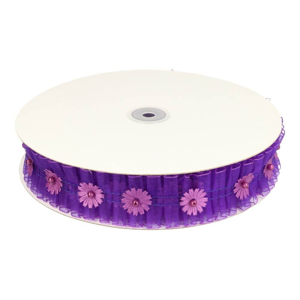 Organzalint met satijnruche 30mm - 9,2m - 009 -