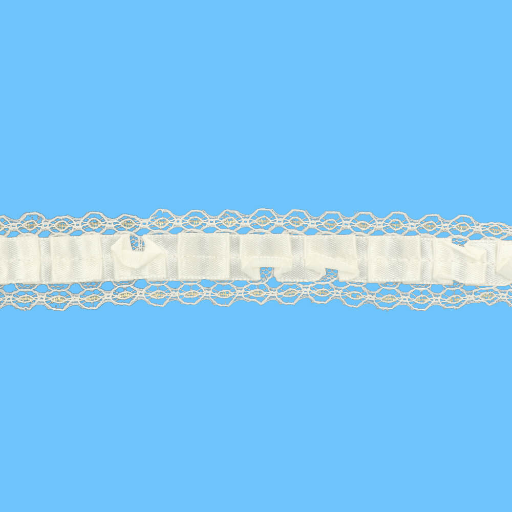 Satijn gerimpeld met kanten rand 25mm - 12,5m - 000 -