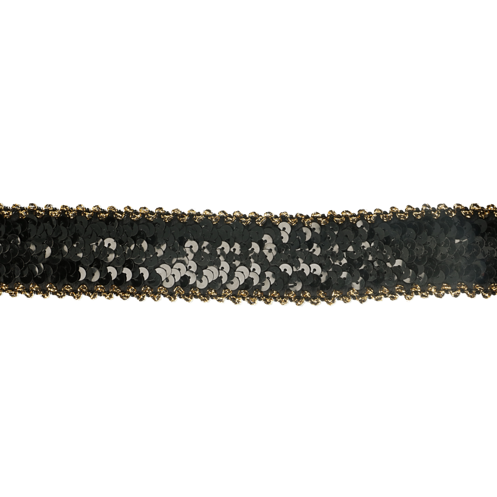 Band met pailletten zwart - 20m -