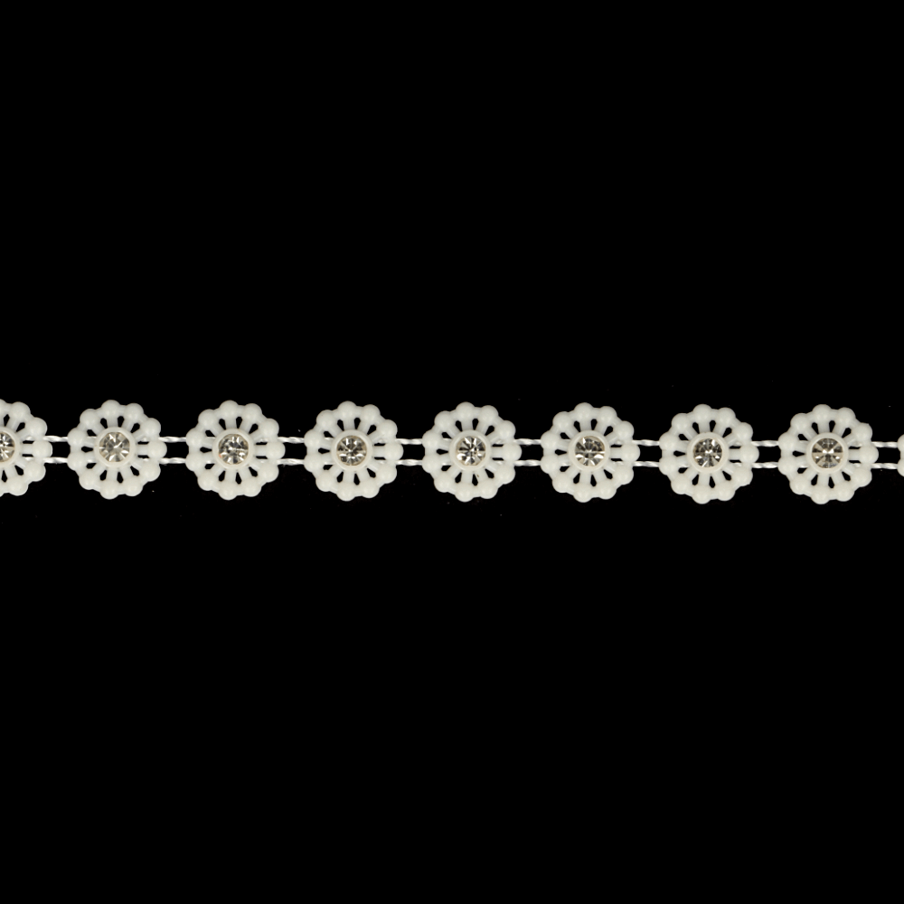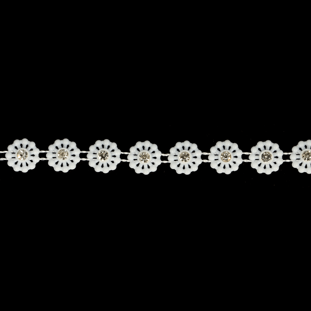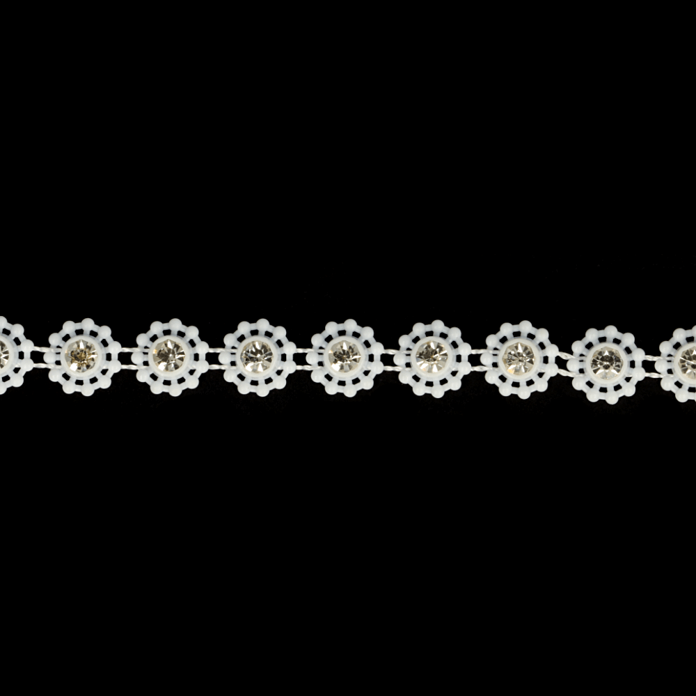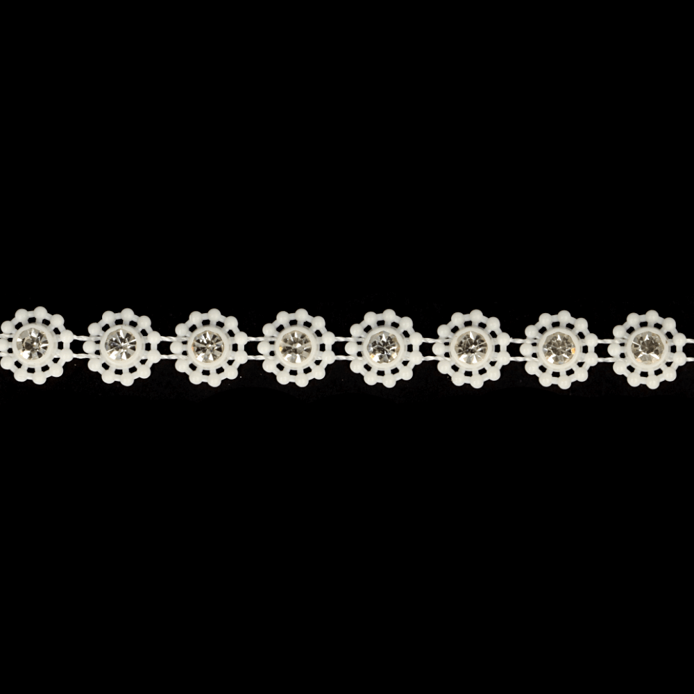 Strassband bloem kleine steen wit - 9,2m - 009 -