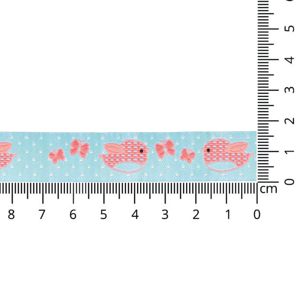 Geweven band vogels en vlinders stippen 16mm - 25m - 02