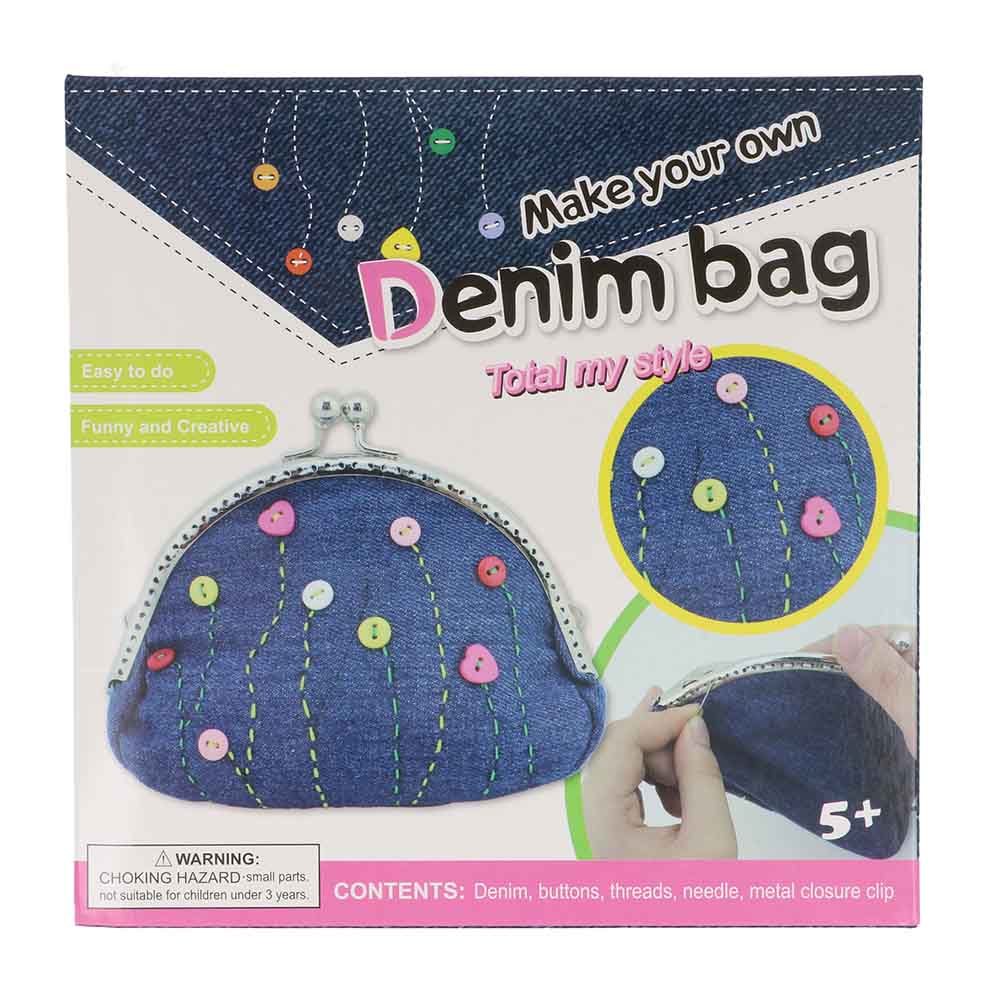 Naaipakket voor kinderen denim portemonnee - 1st